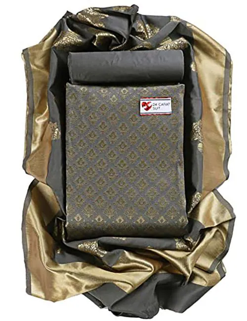 Sun Fashion and Lifestyle Women Grey Woven Cotton Silk Unstitched Salwar Suit Dress Material with Dupatta