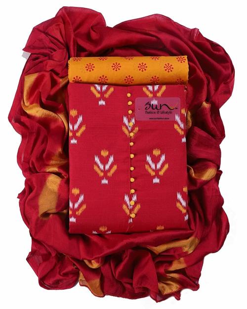 Sun Fashion and Lifestyle Women Red Printed Cotton Unstitched Salwar Suit Dress Material with Dupatta