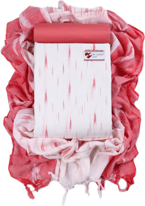 Sun Fashion And Lifestyle Women White, Pink Printed Cotton Blend Unstitched Dress Material