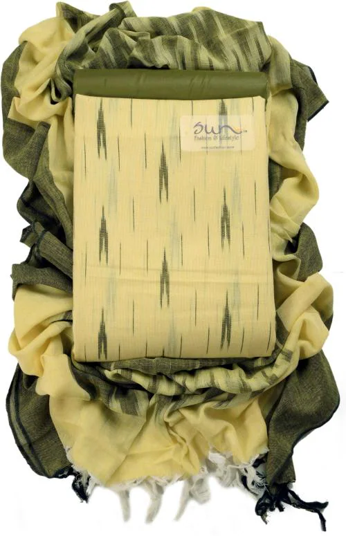 Sun Fashion And Lifestyle Women Yellow Self Design Cotton Blend Unstitched Dress Material