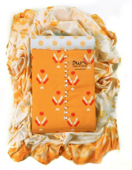 Sun Fashion And Lifestyle Women Yellow, White Printed Cotton Blend Unstitched Salwar Suit Material