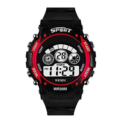 Brand name - Swadesi Stuff Swadesi Stuff multi function sports digital kids watch for boys and girls kids digital collection watch the funky design on this Swadesi Stuff watch is unique and attracts instant attention. This digital watch for kids has multi function mode in the watch and 7 different back light in watch, round-shaped dial digital movement, a back casing that is made of stainless steel and a crown to adjust the time and date. The strap is black coloured and has a comfortable buckle clasp closure.