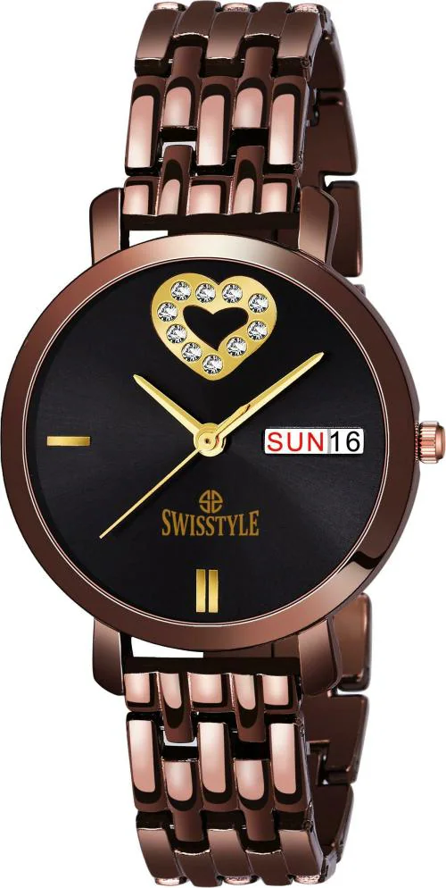 Swisstyle Analog Black Dial Brown Strap Watch for Women (SS-LR251-BRW-BRWCH)