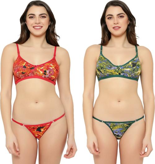 Tace Women Multicolor Printed Cotton Silk Pack of 2 Lingerie Sets