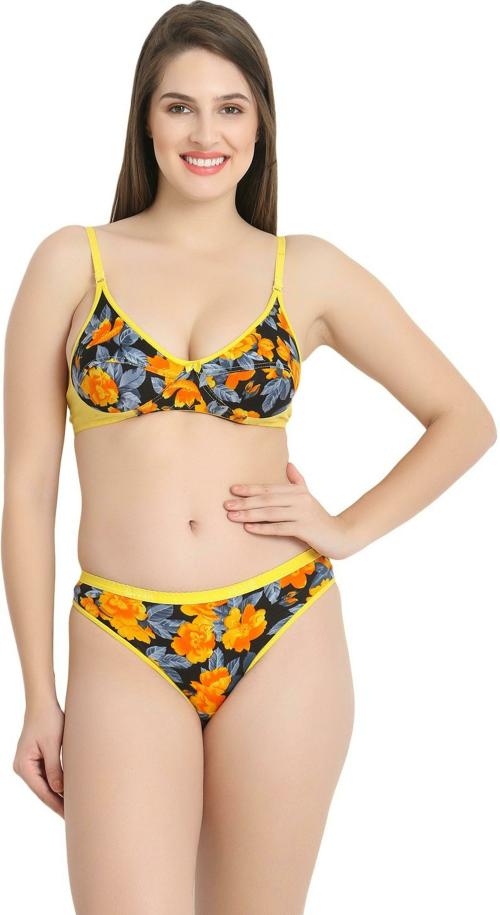Tace Women Yellow Floral Cotton Blend Lingerie Set