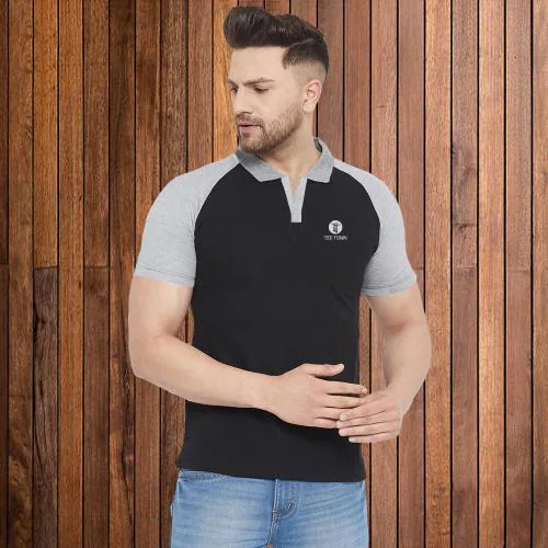 Tee Town Cotton Polo Neck Tshirt for mens Black| T shirt for men | Tshirt | Tshirt Men |