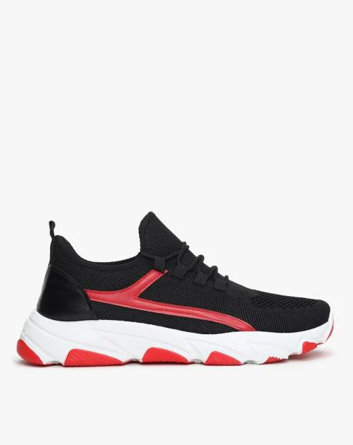 Textured Panelled Low-Top Lace-Up Sneakers