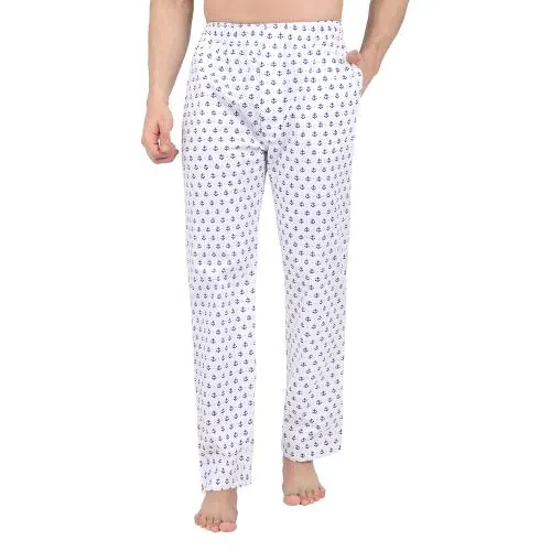 The Cotton Company Men's White Anchor Print 100% Cotton Pajama Lounge Pants (Medium)