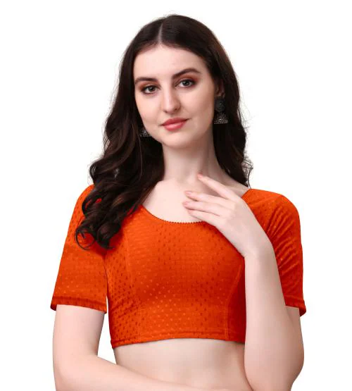 THE DECOR TEX Round Neck Women Half Sleeve Blouse (40, Orange)