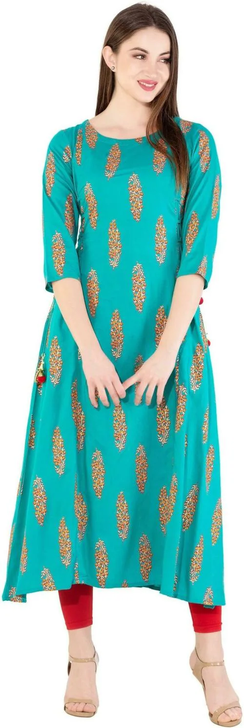 The Fab Factory Women Blue Floral Viscose Single A-Line Kurta
