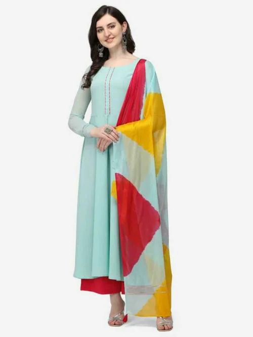 The Fab Factory Women Light Blue Solid Crepe Single Kurta Pyjama With Dupatta Sets-