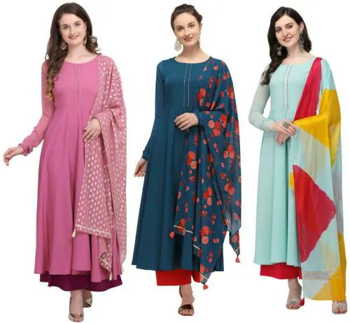 The Fab Factory Women Multicolor Solid Crepe Georgette Pack of 3 Kurta Set
