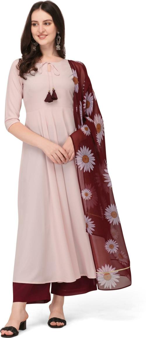 The Fab Factory Women Pink Solid Crepe Georgette Single Kurta Dupatta Sets-