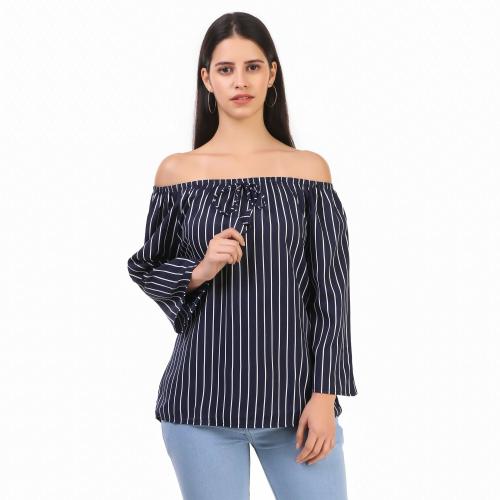 THE LION'S SHARE Women Blue Striped Crepe Top