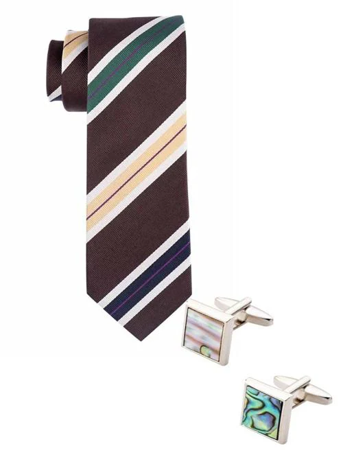 The Tie Hub Brown Microfiber Necktie and Mop Cufflink