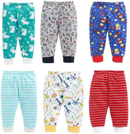 tiniberry Baby Boys and Girls Multicolor Printed Cotton Blend pack of 6 Track Pant, (12 to 18 Months)