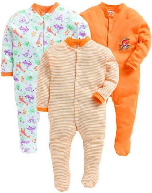 Tiniberry Baby Boys and Girls Orange Printed Cotton Blend, Hosiery (pack of 3) Rompers, 9 - 12 Months
