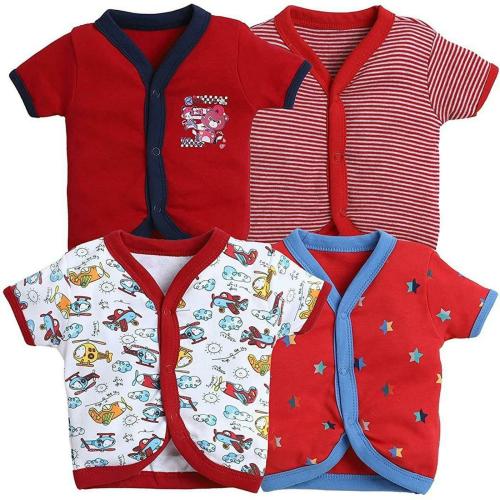tiniberry Baby Boys and Girls Red Striped Cotton Blend T-Shirts (pack of 4) 12 to 18 Months