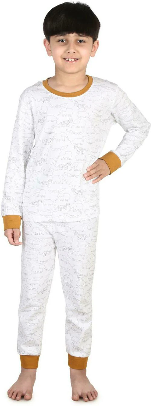 Tinklebuds Boys White Printed Cotton Blend Top & Pyjamas Set (7-8Y)
