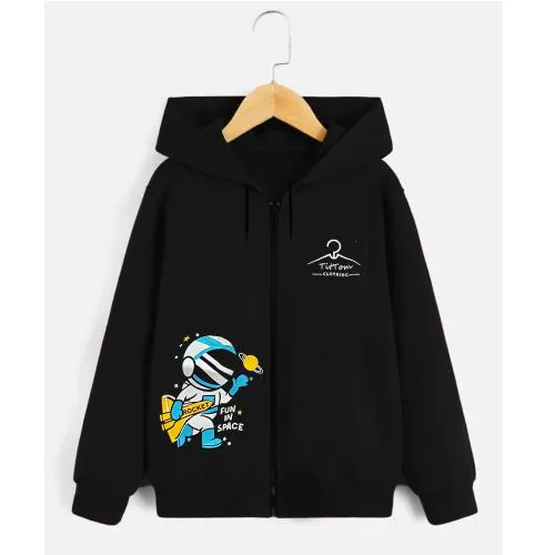 TitTom Boy's Cotton Black Space Printed hood (Pack of 1)