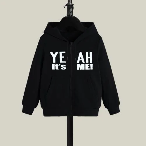 TitTom Boy's Cotton Black Yeah Printed hood (Pack of 1)