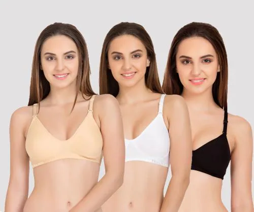 Tkeshto Multicolor Solid Cotton Pack of 3 Tshirt Bras