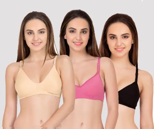 Tkeshto Multicolor Solid Cotton Pack of 3 Tshirt Bras