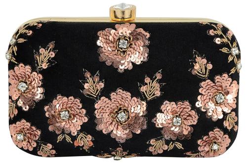 Tooba Handicraft Black Velvet Women Designer Clutch Bag With Shoulder Strap