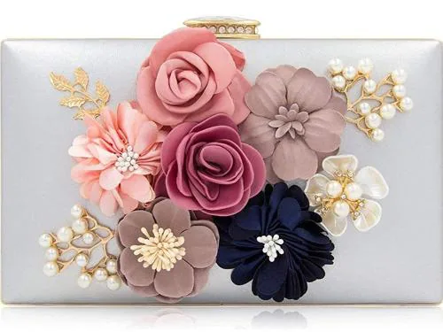 Tooba Handicraft Silver Synthetic Women Designer Clutch Bag With Chain Strap
