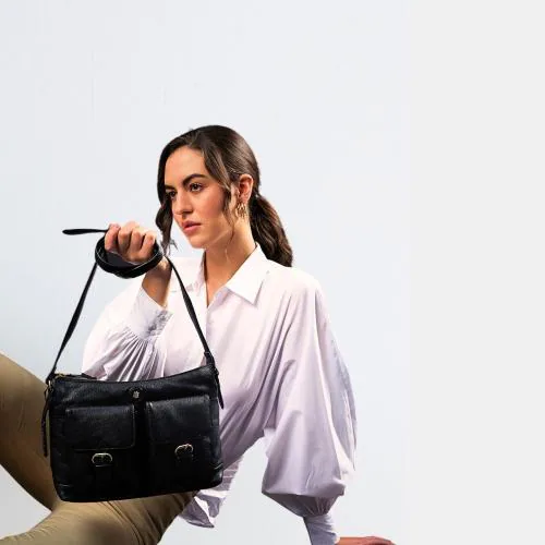 Tortoise -100% Genuine Leather Everyday Travel Sling Bag for Womens/Girls Black (Jayna)