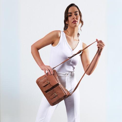 Tortoise -100% Genuine Leather Everyday Travel Sling Bag for Womens/Girls Tan (Jayna)