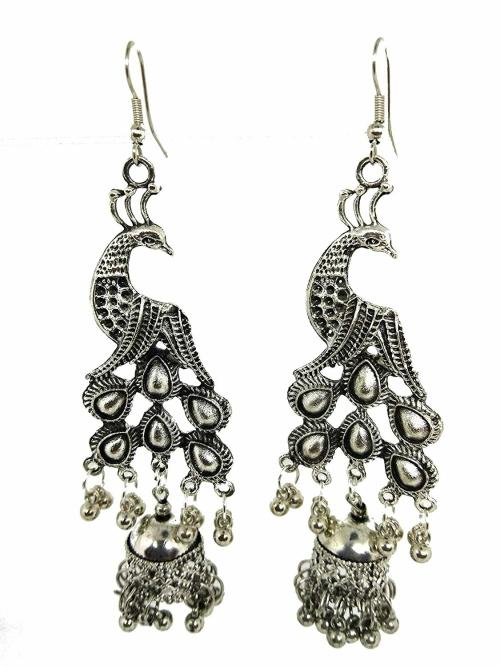 Total FashionSilver Plated Antique Long Picock Jhumkas Hook Earrings for Womens and Girls Total Fashion