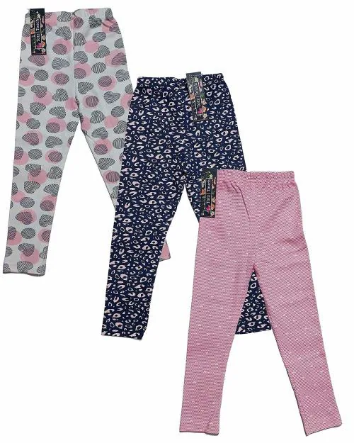 TotzTouch Girls Multicolor Printed Cotton Pyjama (Pack of 3)