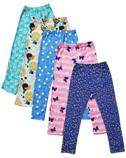 TotzTouch Girls Pants Multicolour Printed Cotton Pyjama Pant (Pack of 5)
