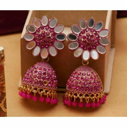 Antico Traditional Ethnic Pink Color Oxidized Mirror Jhumka Jhumki Earring for Women