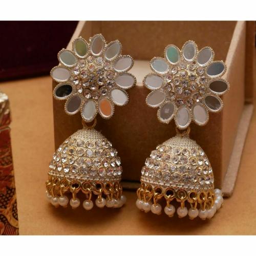 Antico Traditional Ethnic White Color Oxidized Mirror Jhumka Earrings for Women
