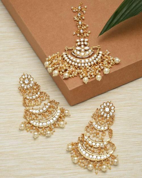 Traditional Kundan & Pearl Earrings with Mangtika - ZPFK12107