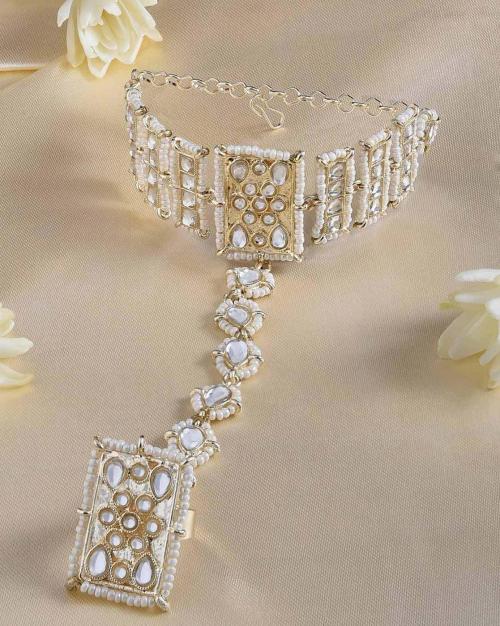 Traditional Kundan & Pearls Hand Harness-ZPFK15352