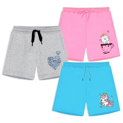 Trampoline Girls Multicolor Printed Cotton Pack of 3 Shorts