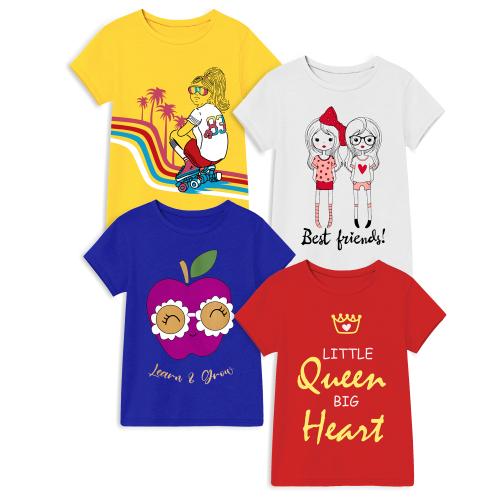 Trampoline Girls Multicolor Printed Cotton Pack of 4 Half Sleeves T-shirts