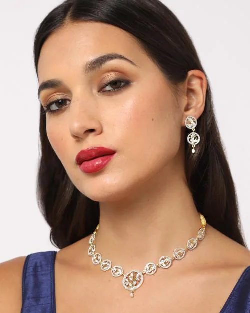 Tree of Hope American Diamond-Studded Necklace & Earrings Set