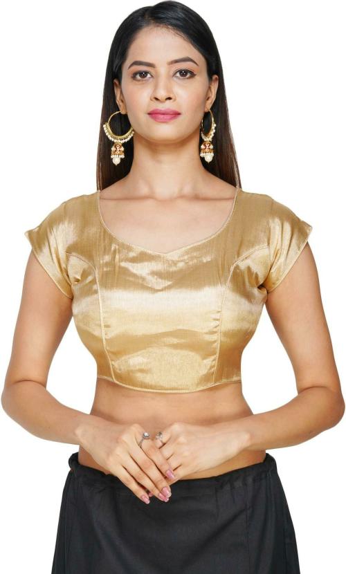 Trendzmy Women Gold Self Design Cotton Silk Round Neck Blouse, Free Size