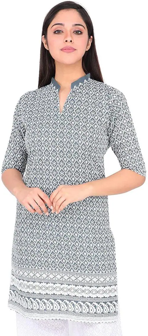 Trendzmy Women Grey Chikan Embroidery Pure Cotton Kurta (Xxl)