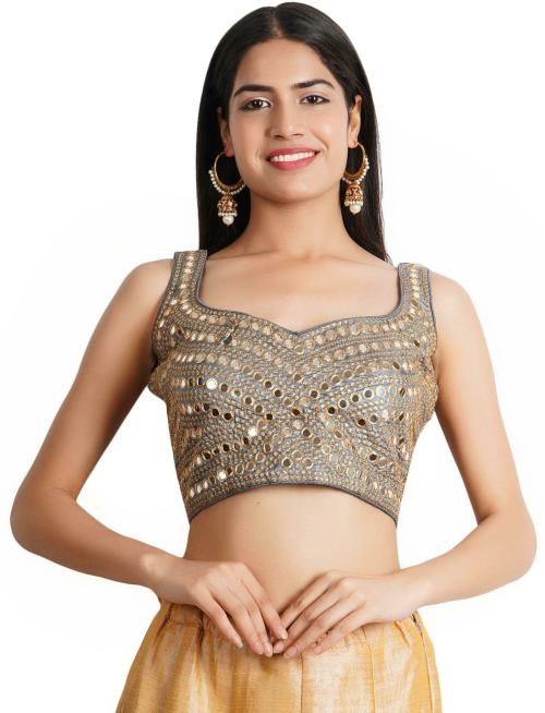 Trendzmy Women Grey Embellished Cotton Silk Sweetheart Neck Blouse, Free Size