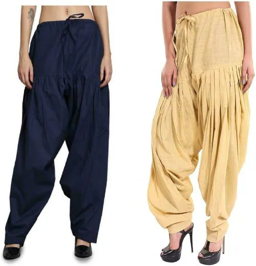 Trendzmy Women Navy Blue, Beige Solid Pure Cotton pack of 2 Salwar Pants (Free size)