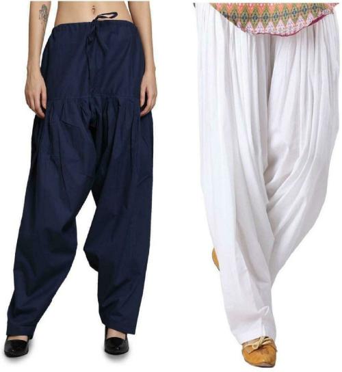 Trendzmy Women Navy Blue, White Solid Pure Cotton Pack of 2 Salwar Pants (Free size)