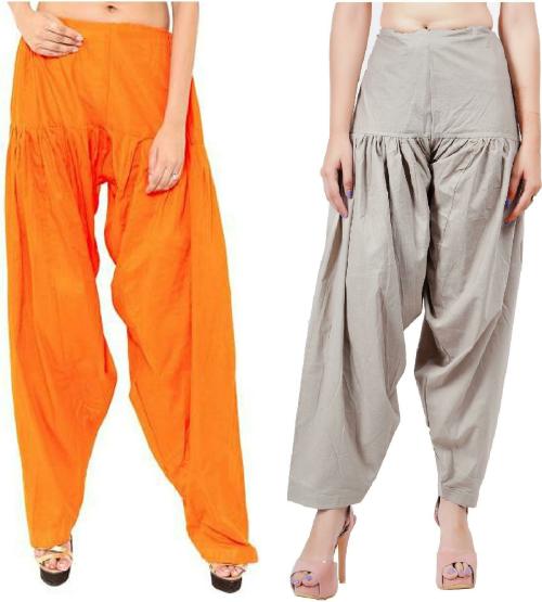 Trendzmy Women Orange, Font Grey Solid Pure Cotton pack of 2 Salwar Pants (Free size)