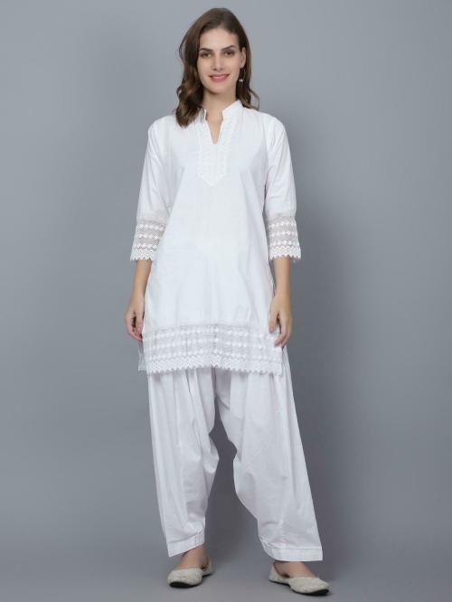 Trendzmy Women White Solid Cotton Blend Straight Kurta (Medium)