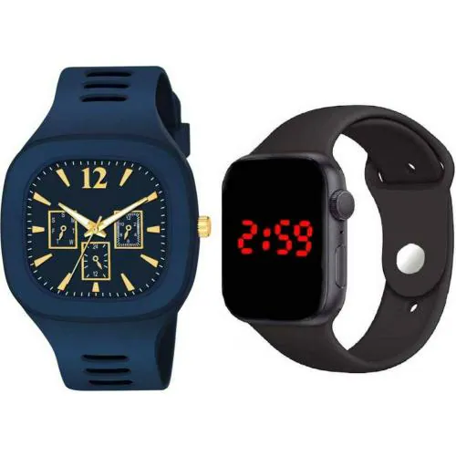 Trex Stylish Casual Sport Square LED Analog to Digital Watch Blue Dial Blue Strap for Boys and Girls (Pack of 2)
