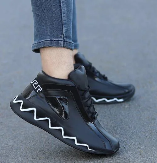 TRM Stylish Trendy Lace up Sneakers for Men (Black)